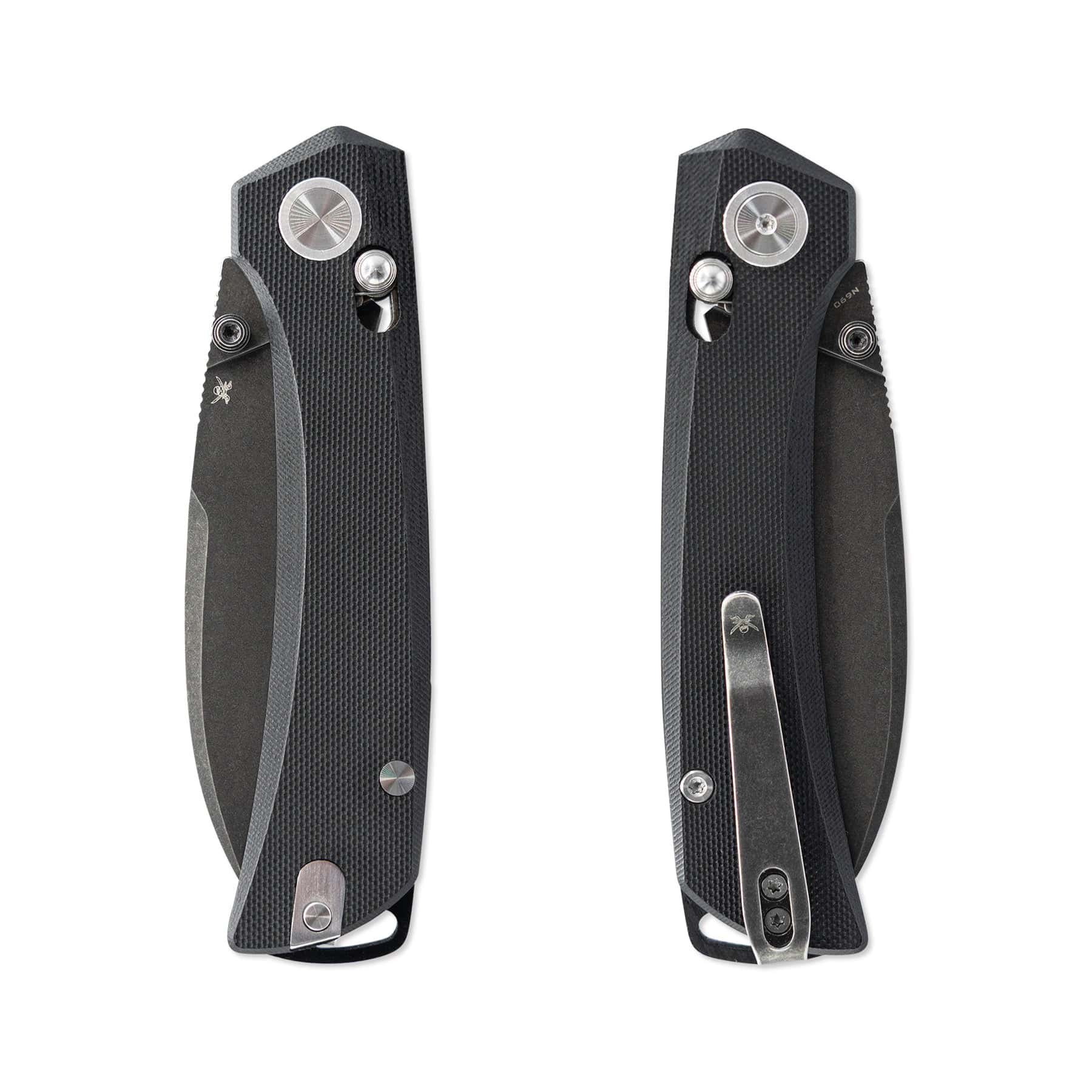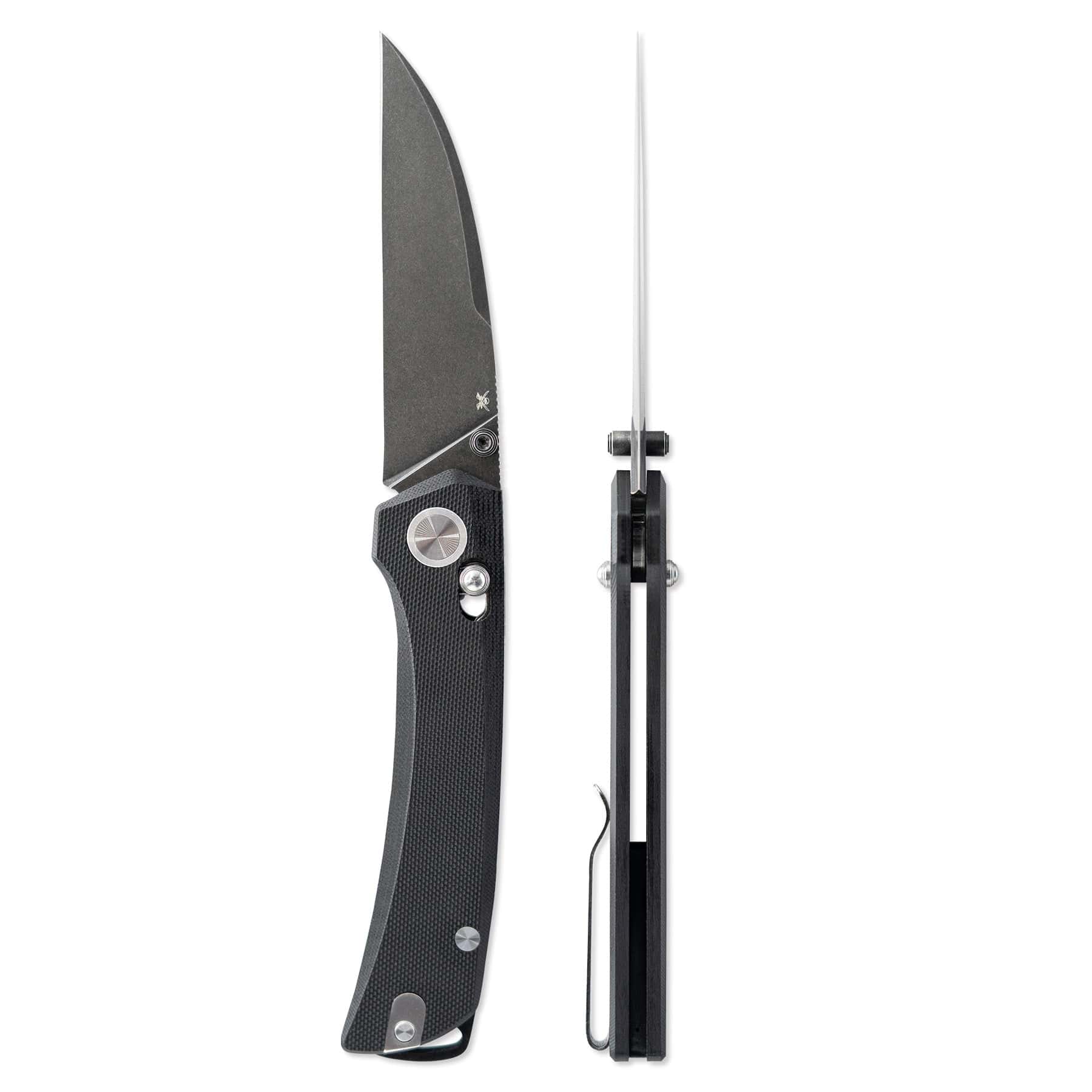 A coated aluminum backspacer and matching coated aluminum pocket clip keep the Porpoise Wharncliffe lightweight, balanced, and ready for daily carry. Its slim 0.45-inch overall thickness allows the knife to ride comfortably in the pocket without printing or creating unwanted bulk.